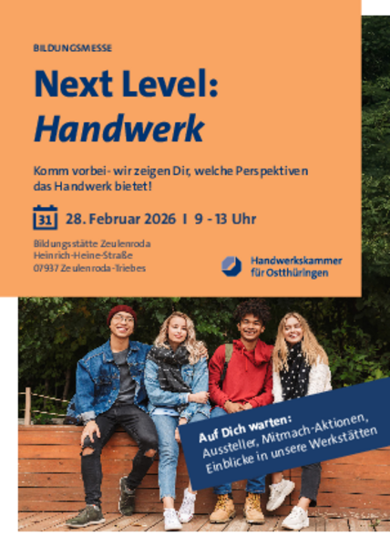 Komm vorbei, stell deine Fragen und finde heraus, welcher Weg zu dir passt. Next Level: Handwerk – wir freuen uns auf dich in Zeulenroda‑Triebes!